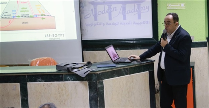 حضور : أ د/ اشرف صبري – المدير التنفيذي للشركة لدعم طلاب قسم الهندسة المدنية للتعرف علي احدث التقنيات المستخدمة في مجالات التربة والطرق وربط الجانب الاكاديمي بسوق العمل