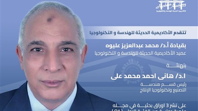 بكل فخر واعتزاز يتقدم قسم هندسة التصنيع وتكنولوجيا الانتاج بخالص الشكر والتقدير الي أ. د / هاني احمد محمد علي رئيس قسم هندسة التصنيع وتكنولوجيا الانتاج علي نشر عدد 3 أوراق بحثيه علمية من ...